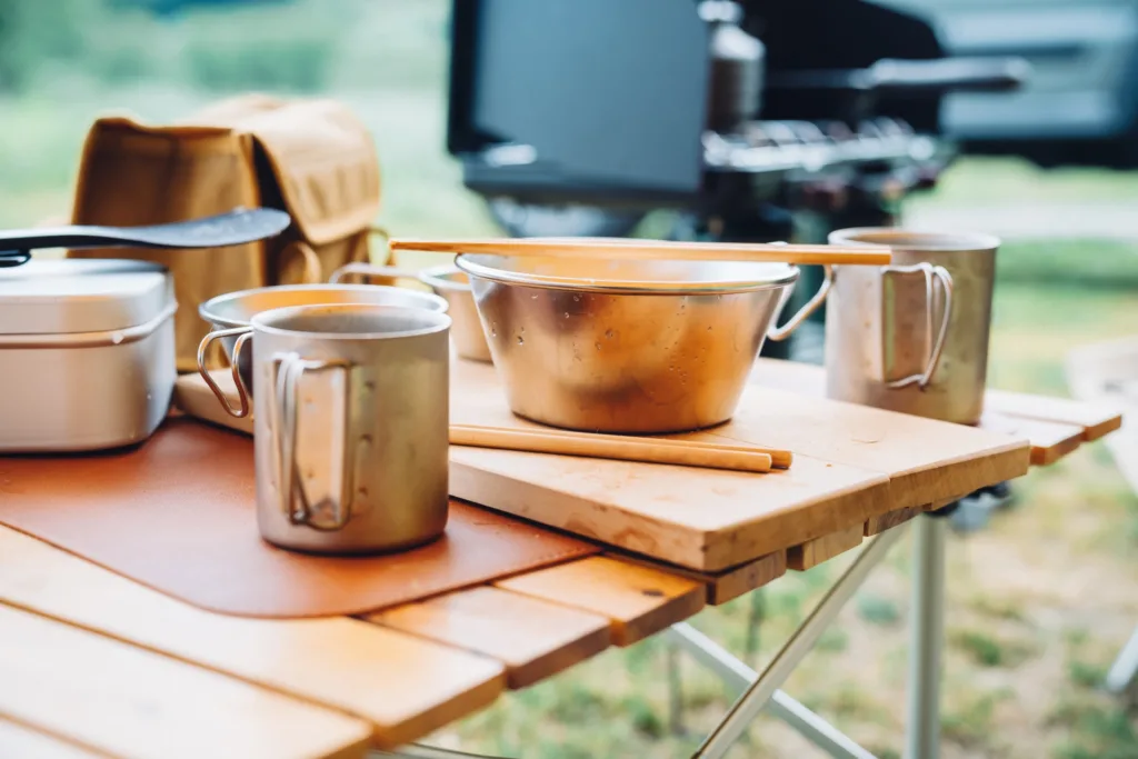 朝食はなるべく火を使わない、あるいは洗い物が出ないメニュー(サンドイッチやカップ麺など)が理想です。食べ終わった瞬間から、バーナーや食器、クーラーボックス内の整理を始めます。この時点で「もう使わないもの」はすべてコンテナに収めてしまいましょう。